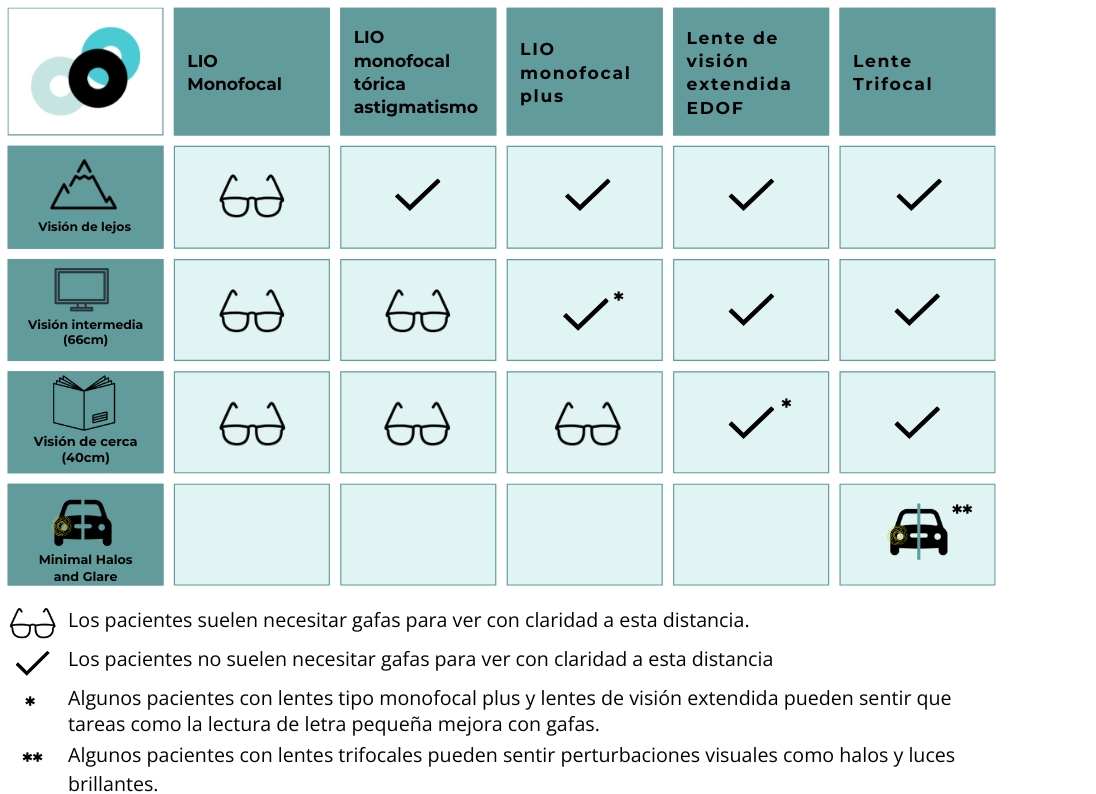 En nuestra clínica, ofrecemos una variedad de lentes de alta tecnología para adaptarse a tus necesidades específicas desde lentes monofocales, a lentes multifocales, EDOF (Extended Depth of Focus) y todas ellas en su versión tórica y no tórica.